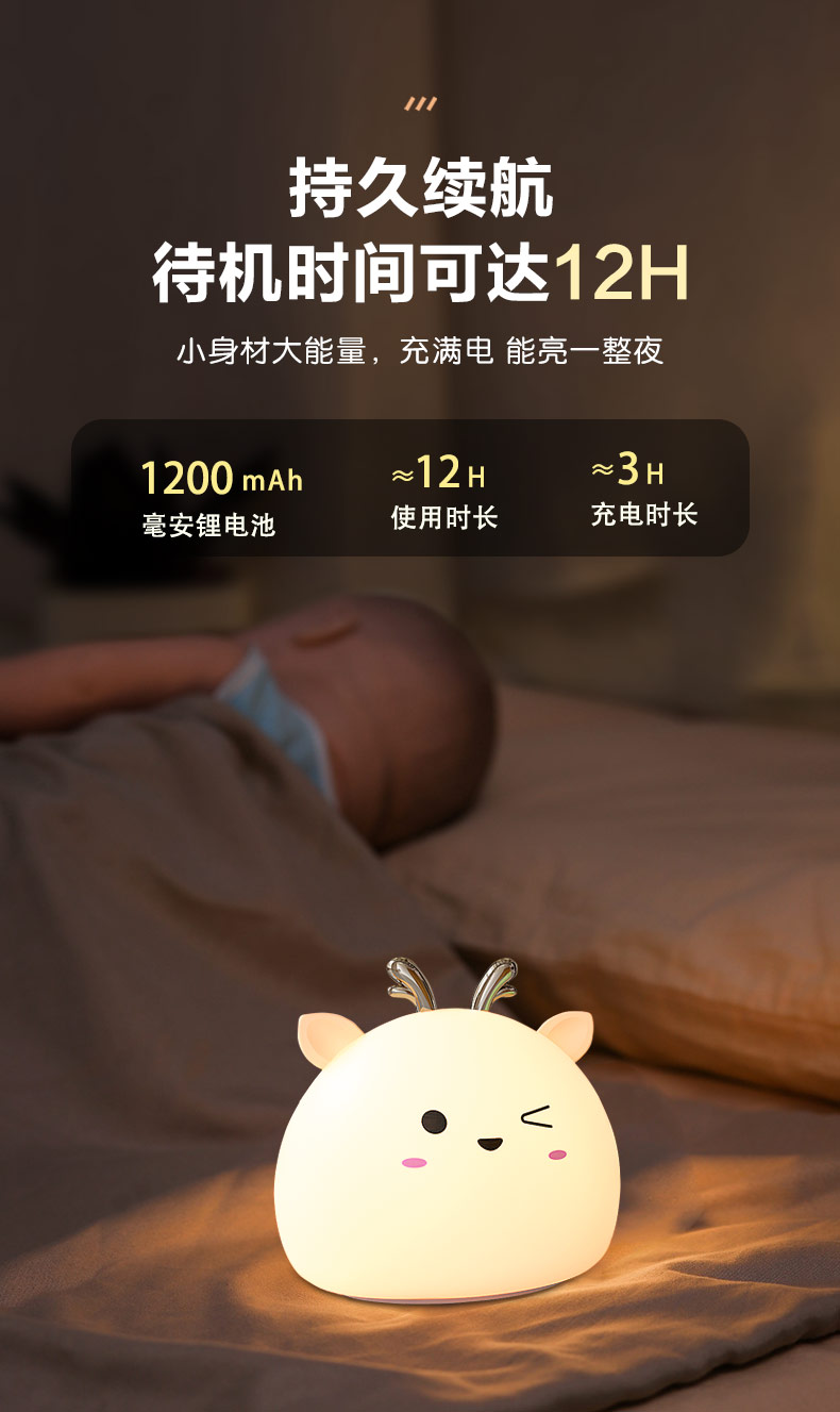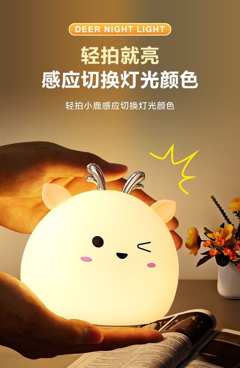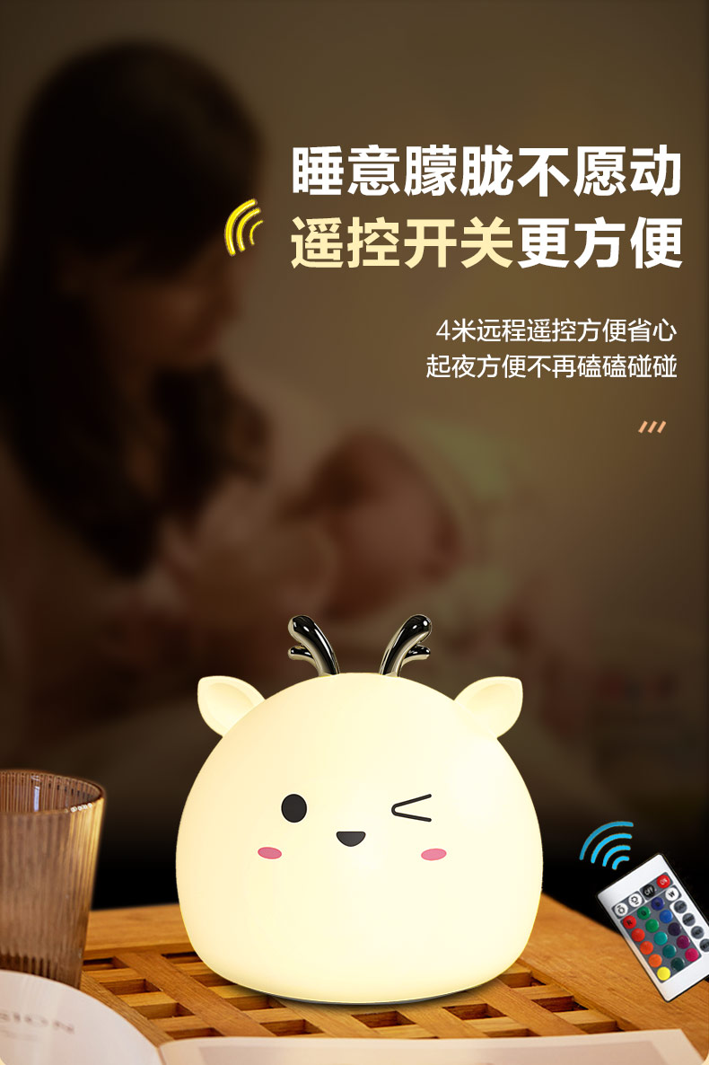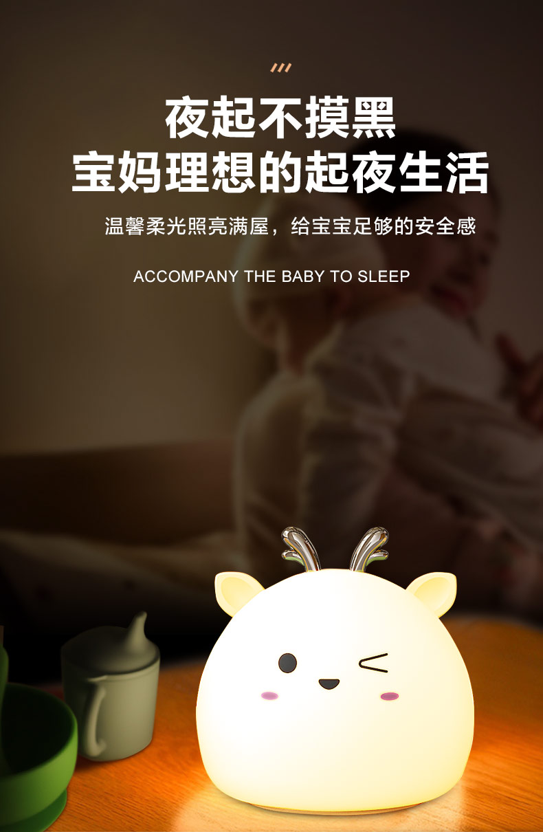 小鹿硅膠小夜燈 拍拍感應(yīng)燈喂奶起夜燈